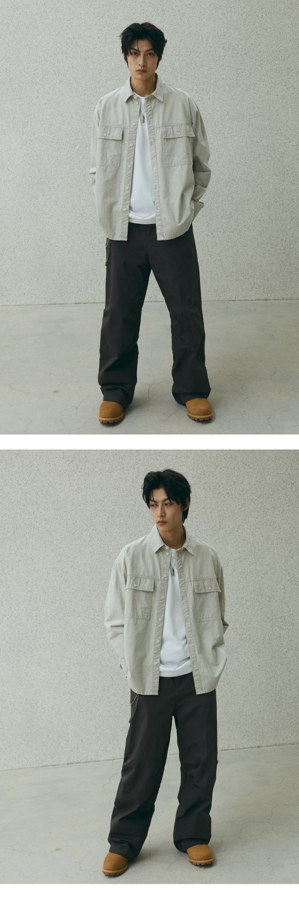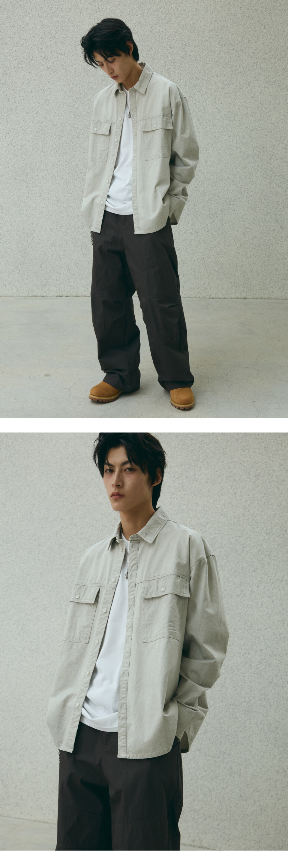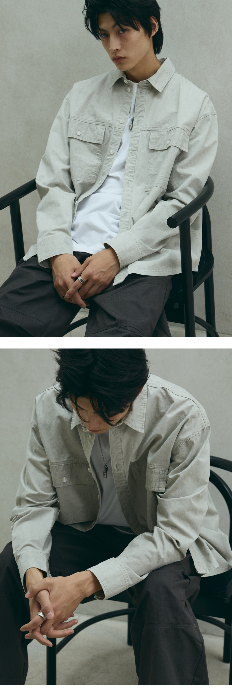 스퀘어 포켓 워싱 셔츠 [라이트그레이]