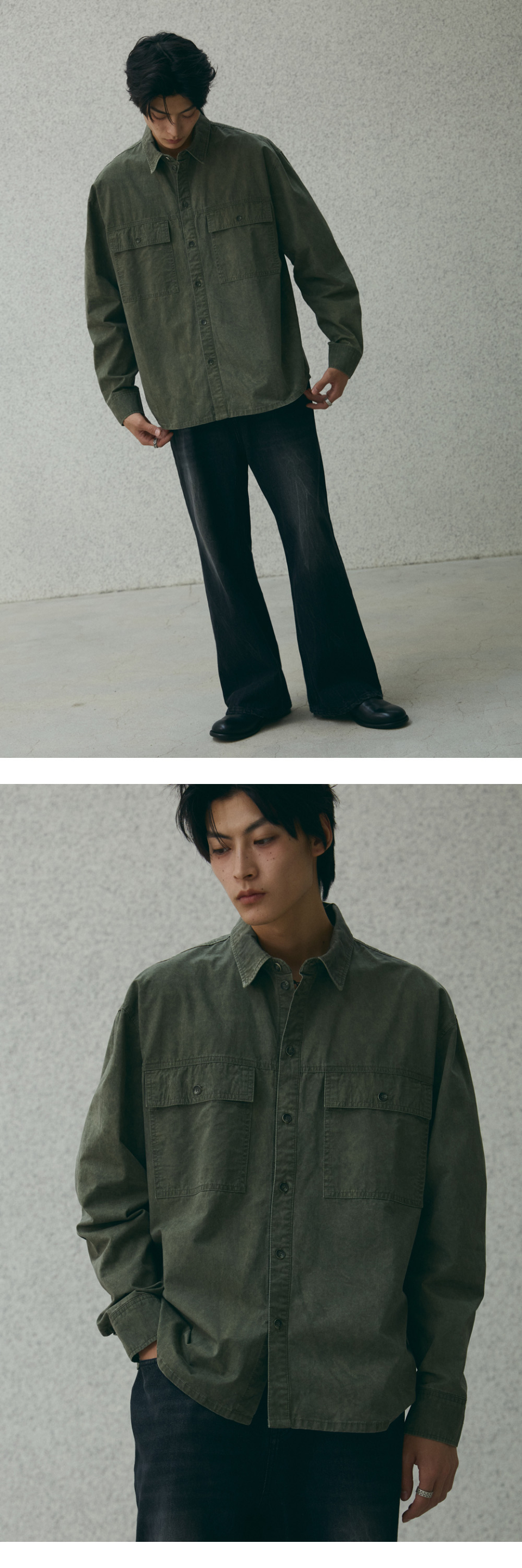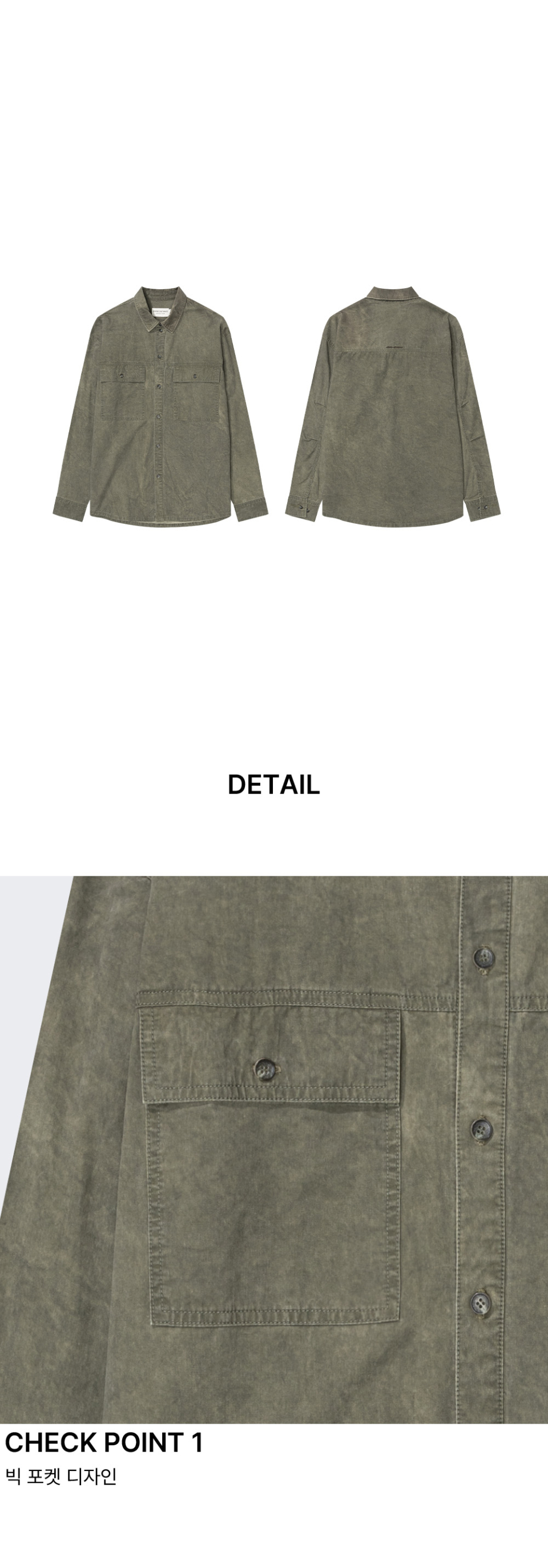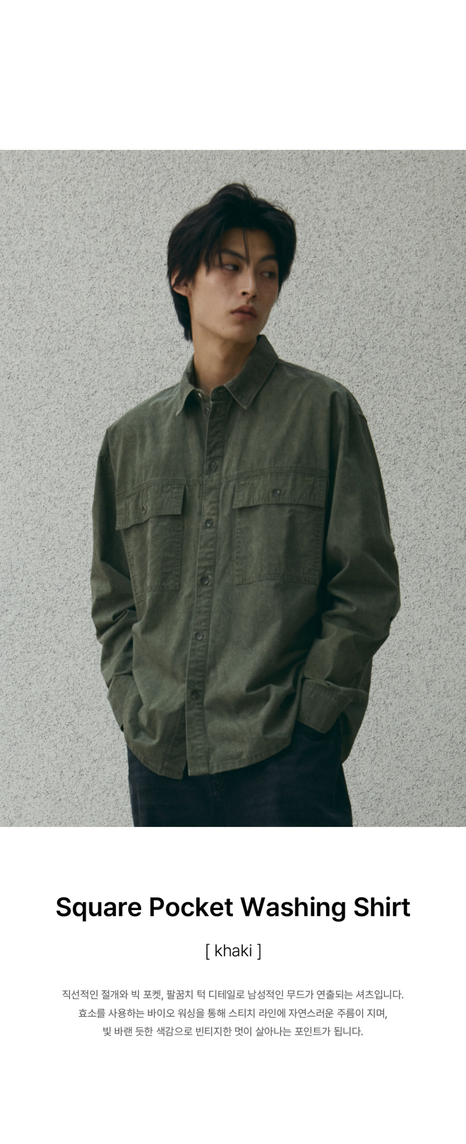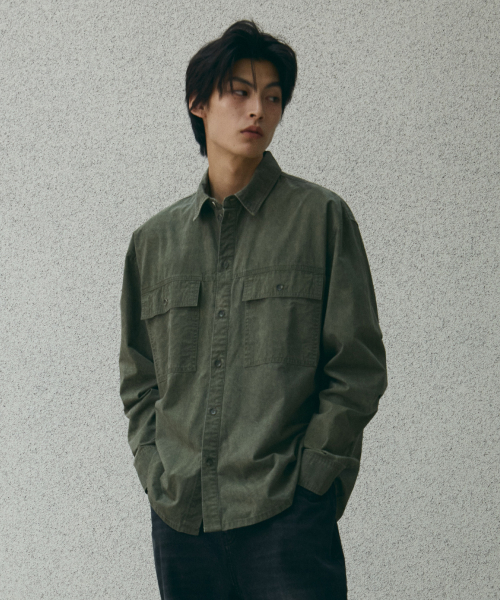 스퀘어 포켓 워싱 셔츠 [카키]