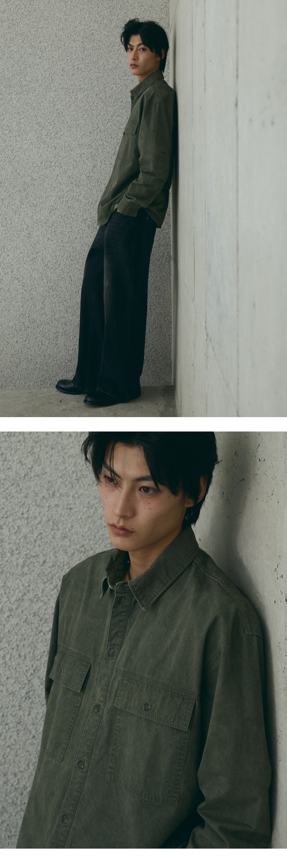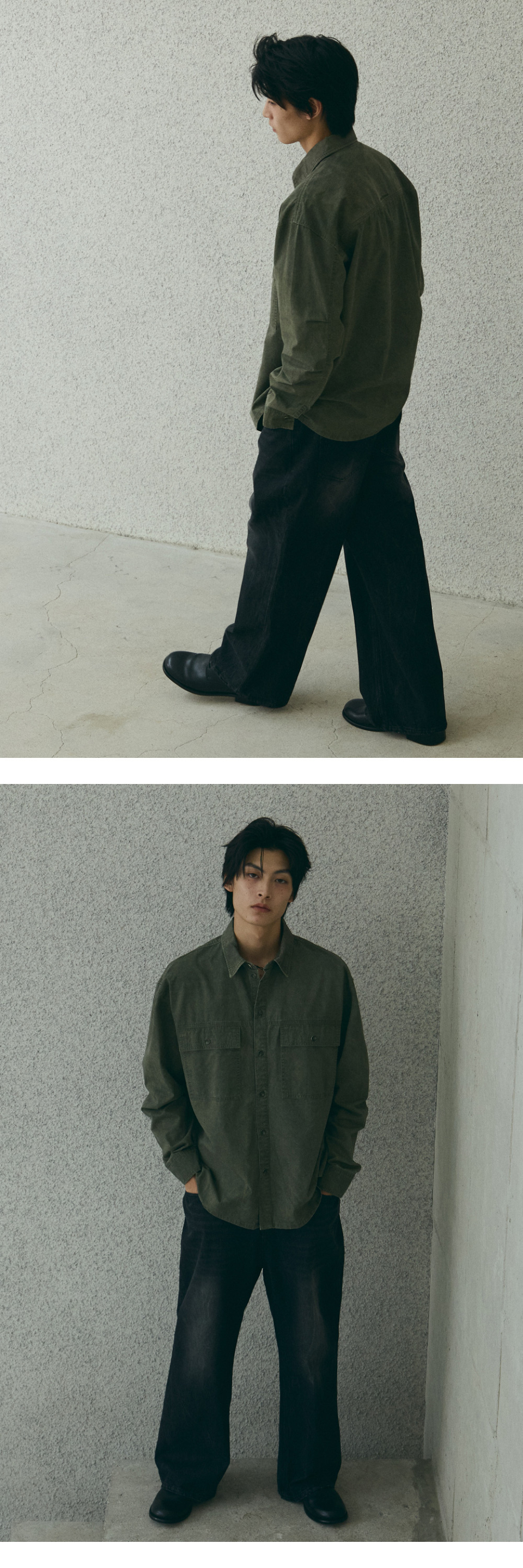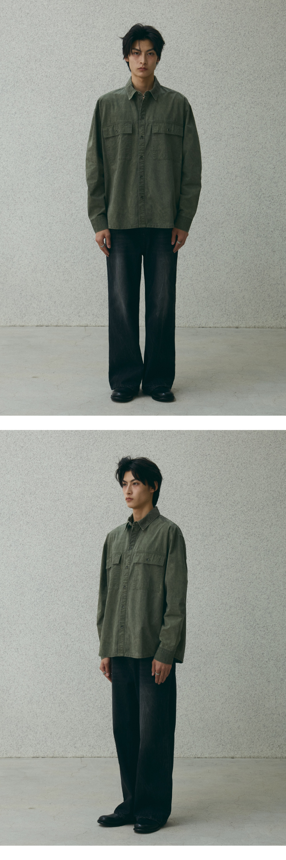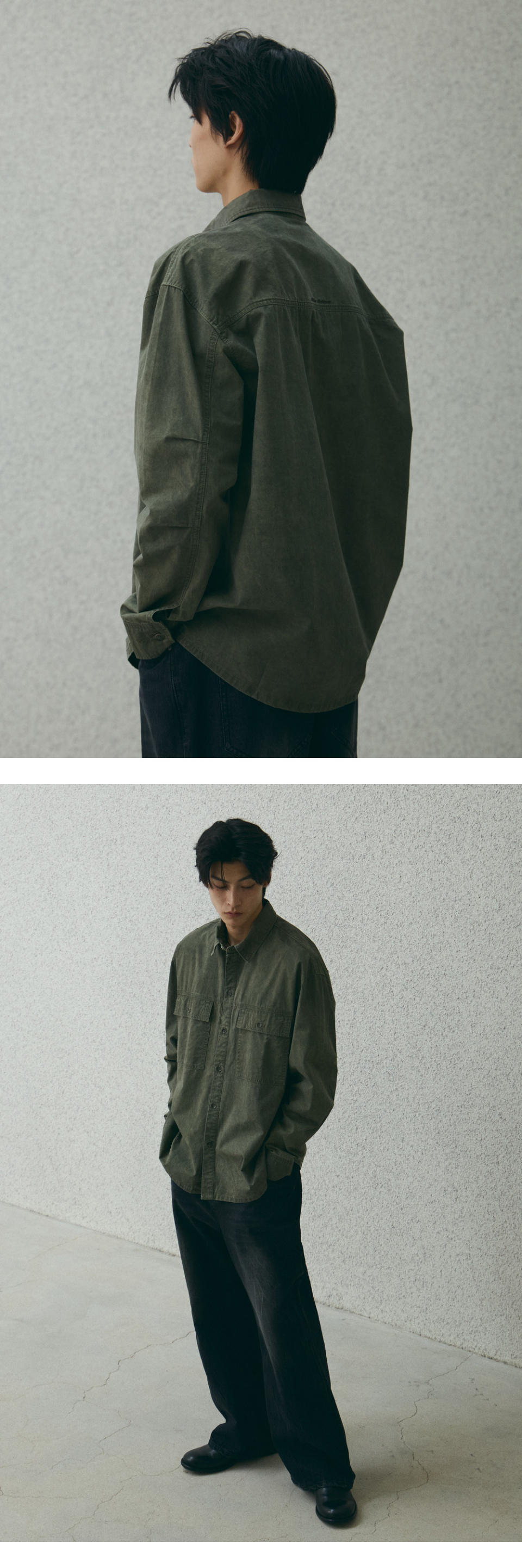 스퀘어 포켓 워싱 셔츠 [카키]