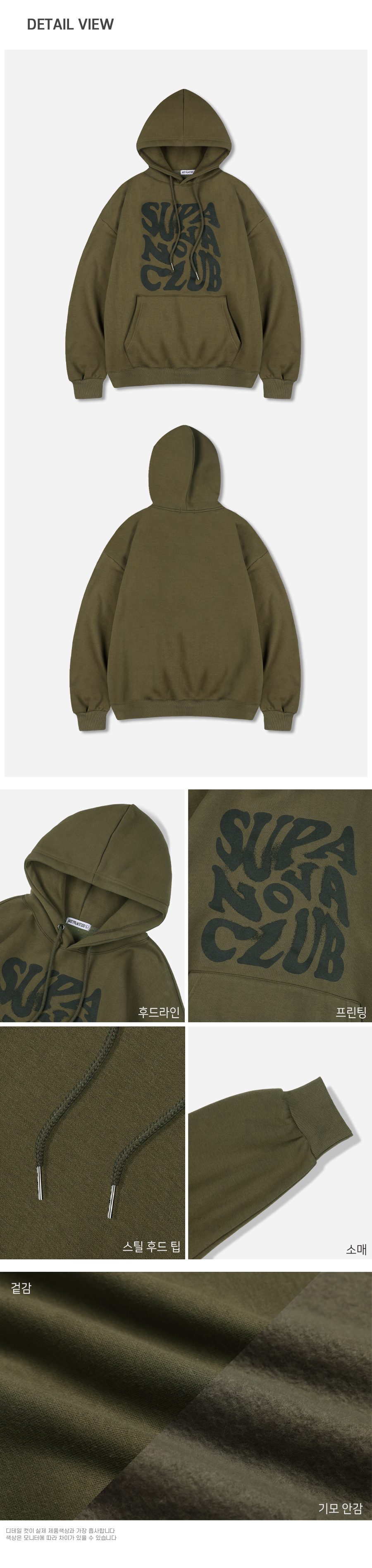 슈퍼노바 로고 오버핏 후드 티셔츠 올리브 [논기모 OR 기모 선택]