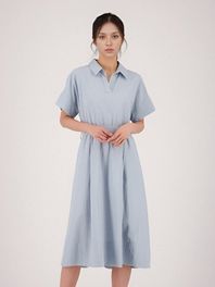 Collar Neck Half Sleeve Dress _Sky