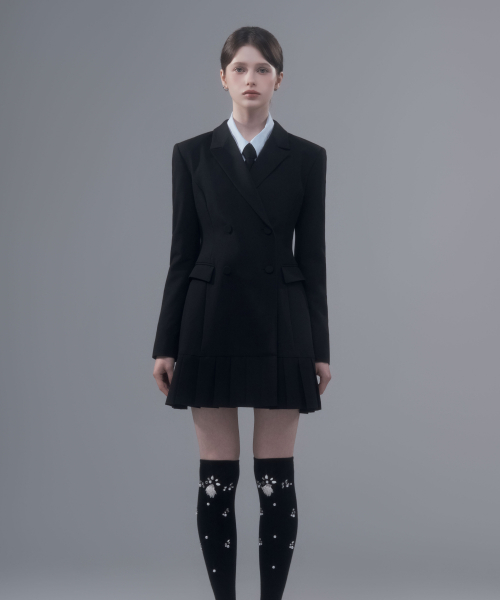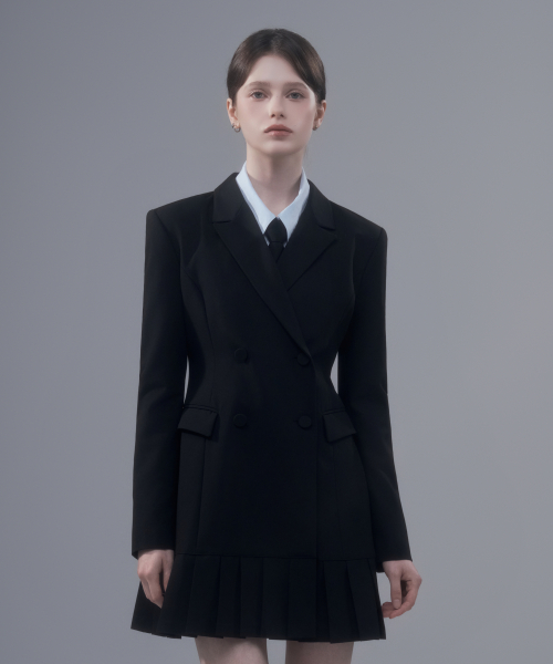 Jenn Pleated Half-Sleeve Suit Jacket Dress - Grey