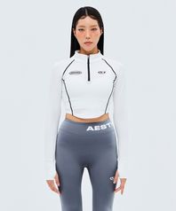 트랙 로고 크롭 하프집업 롱 슬리브 (WHITE)