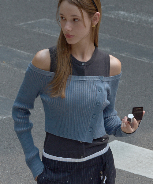 오프숄더 가디건 & 버튼 나시 SET BL