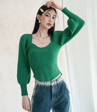 Square Neck Balloon Knitwear GREEN