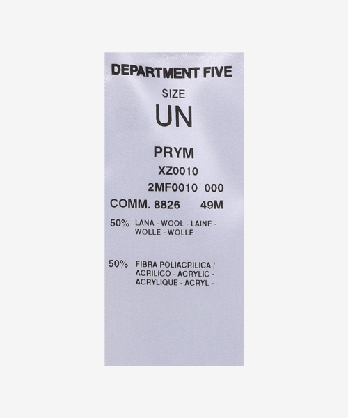 디파트먼트 파이브(DEPARTMENT FIVE)는 Mario Cangini and Nicola Silvagni가 2007년 설립한 젊고 쿨한 데님 브랜드로, 100% 이탈리아 제조를 고집하여 우수한 퀄리티를 담보합니다. 밀리터리 웨어와 워크 웨어의 높은 기능성 데님을 자유분방한 록(rock) 무드와 유행을 앞서가는 실루엣으로 표현합니다.