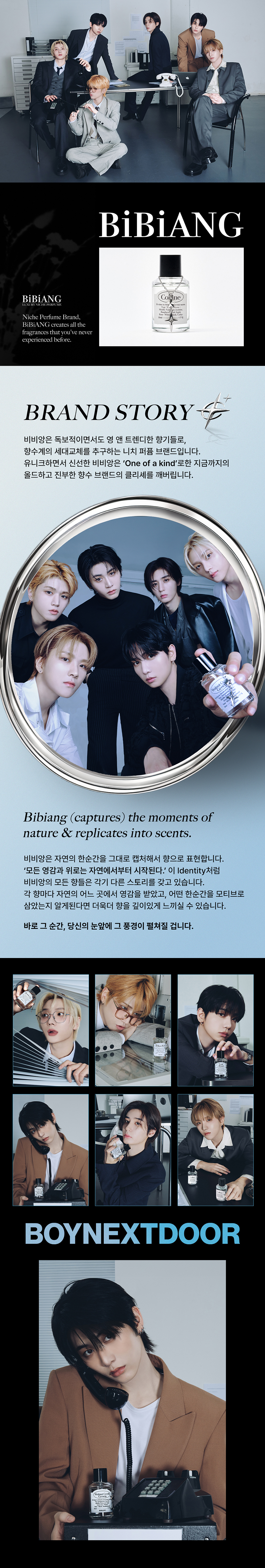 비비앙(BIBIANG)은 독보적이면서도 유니크하고, 영 앤 트렌디한 향기들로 향수계의 세대 교체를 추구하는 센세이셔널한 니치 퍼퓸 브랜드입니다. 자연의 한순간을 그대로 캡처해서 향으로 표현하며, 각 향마다 독특한 스토리텔링을 담고 있습니다.