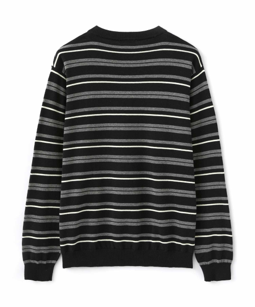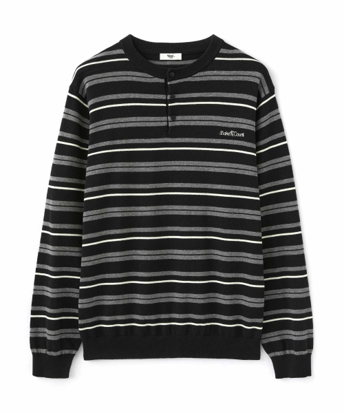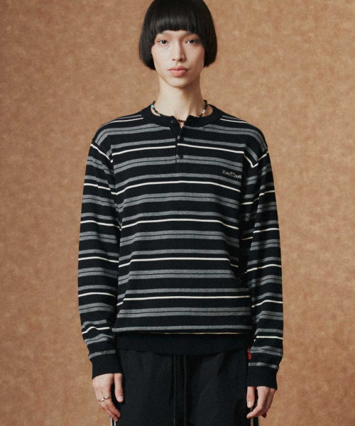 멀티 스트라이프 헨리넥 니트_BLACK