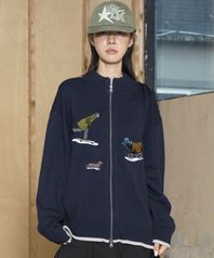GNT076 조제 두들 자수 니트 집업 (NAVY)