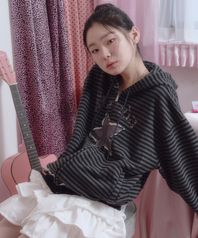 STRIPE STAR CUT-OFF HOOD ZIP-UP BLACK