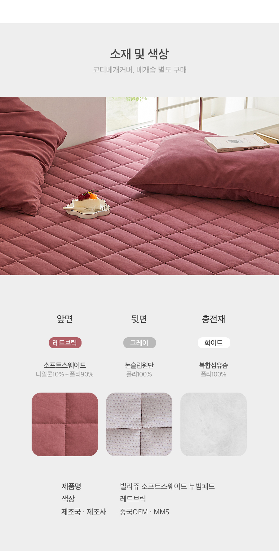 빌라쥬 4COLOR 소프트 스웨이드 누빔패드