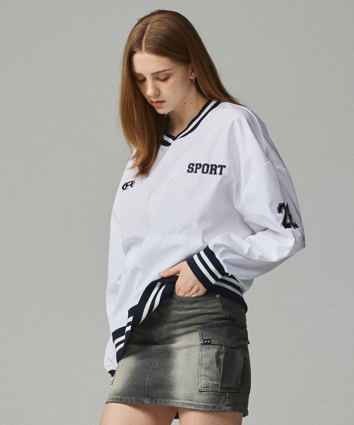 26 자수 스포티 저지 맨투맨 화이트