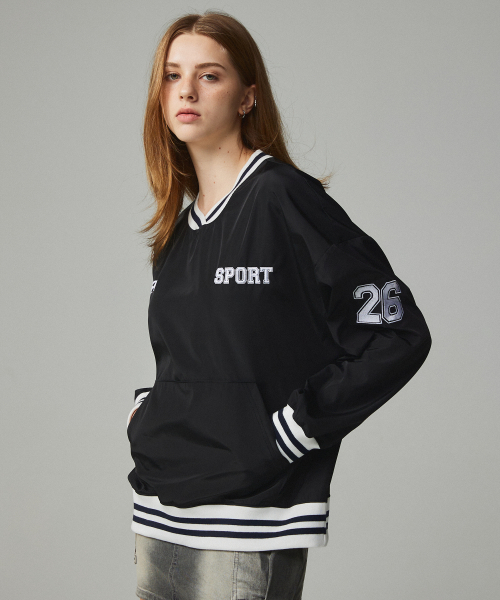 브이넥 오버핏 스웻 셔츠 블랙