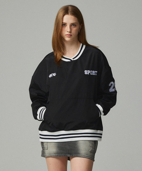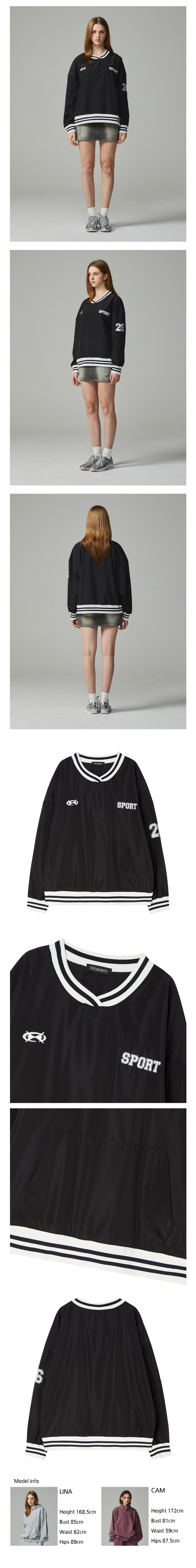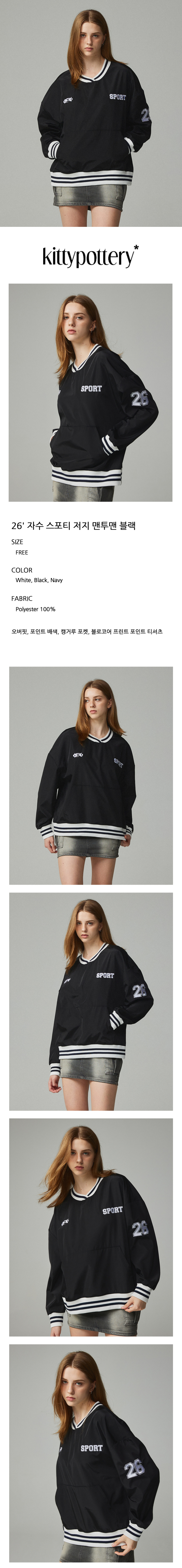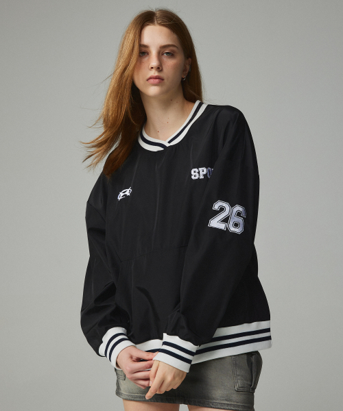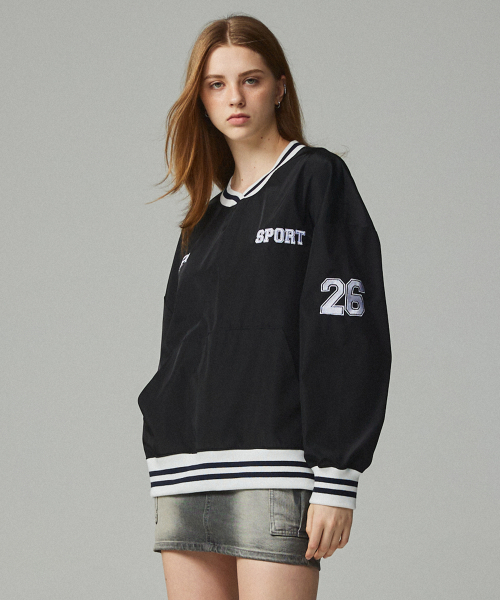 26 자수 스포티 저지 맨투맨 블랙