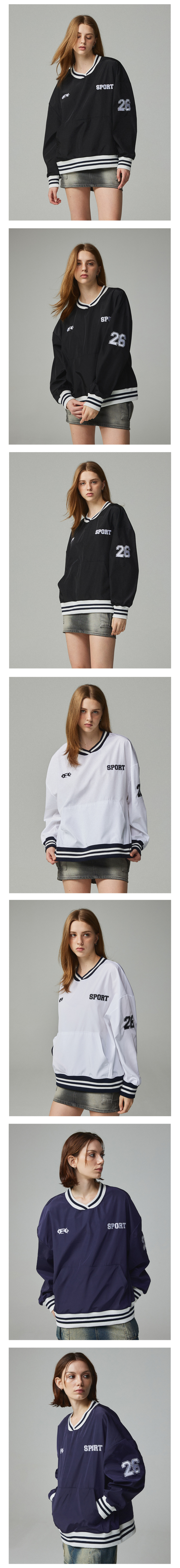 피그먼트 자수 아노락 집업 맨투맨 네이비