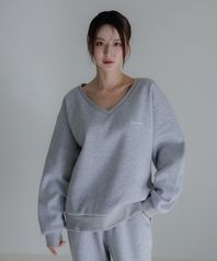 브이넥 오버핏 스웻 셔츠 멜란지그레이