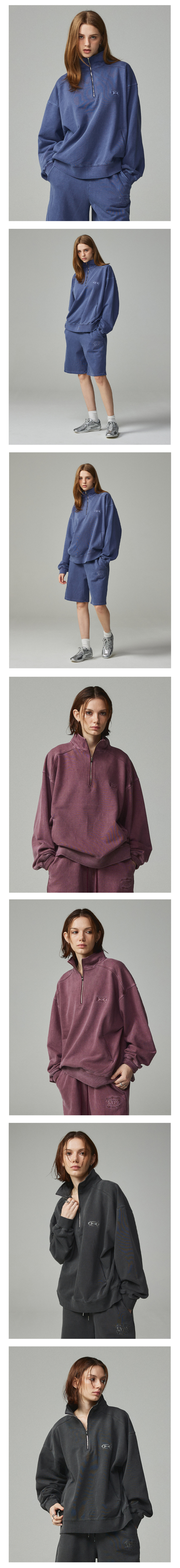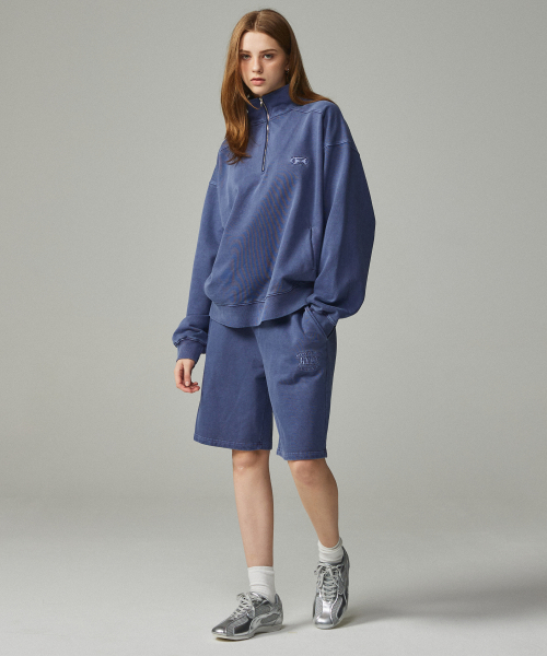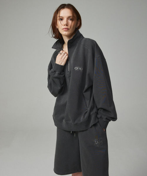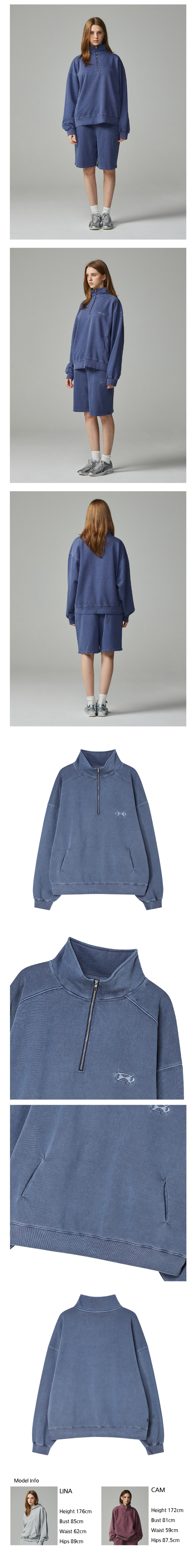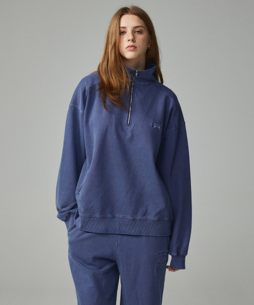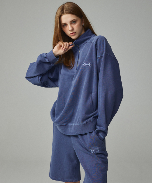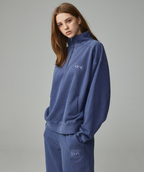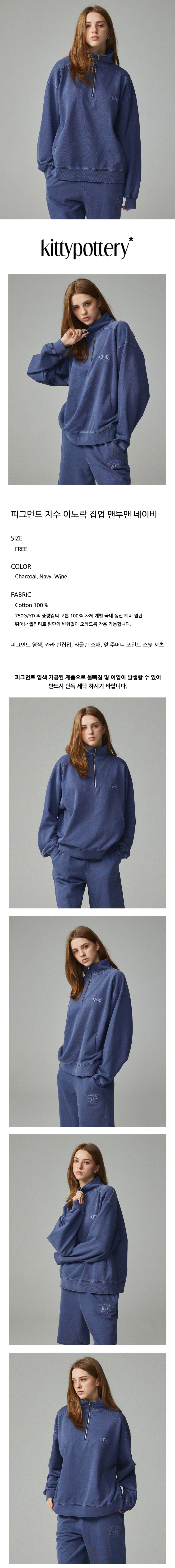 피그먼트 자수 아노락 집업 맨투맨 네이비