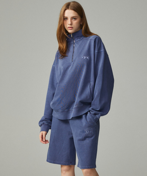 피그먼트 자수 아노락 집업 맨투맨 네이비