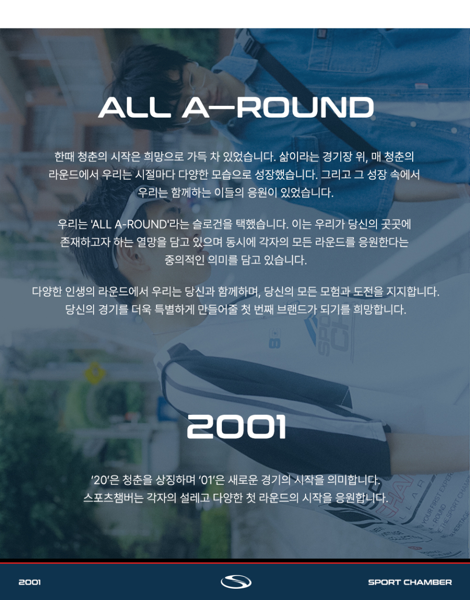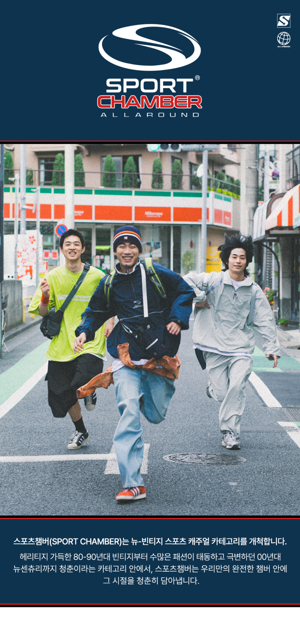 스포츠챔버(SPORT CHAMBER)는 뉴-빈티지 스포츠 캐주얼 카테고리를 개척하는 브랜드입니다. 헤리티지 가득한 80-90년대 빈티지부터 수많은 패션이 태동하고 극변하던 00년대 뉴센추리까지, 청춘이라는 카테고리 안에서 스포츠챔버는 우리만의 완전한 챔버 안에 그 시절을 청춘히 담아냅니다.
