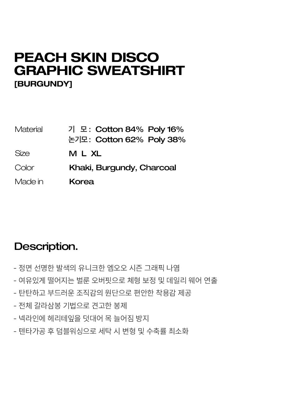 [기모/논기모] 피치스킨 디스코 그래픽 맨투맨 - 버건디