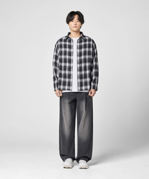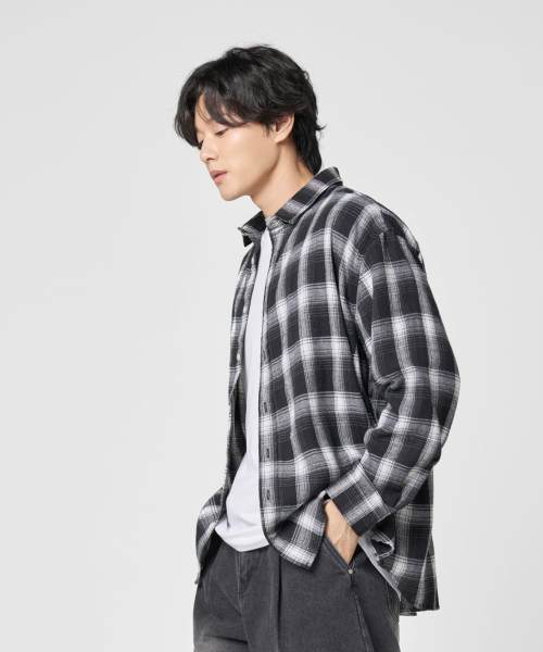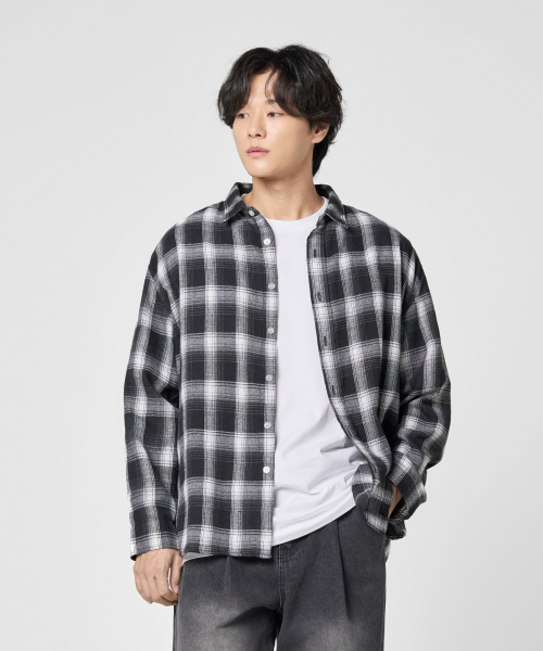 오버핏 플란넬 체크 셔츠 [블랙]