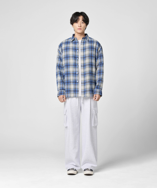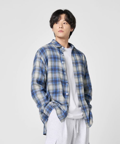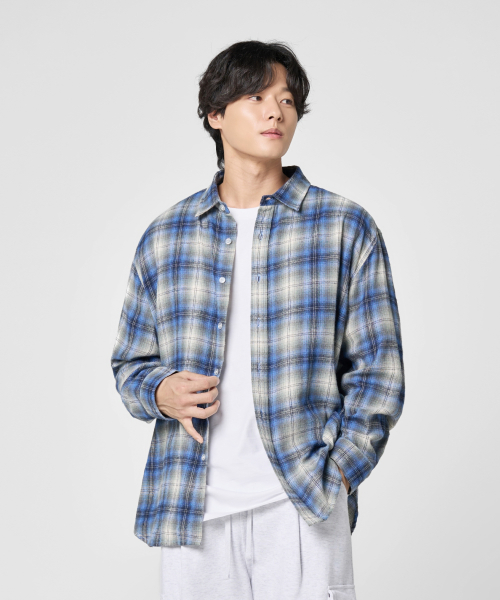 87-STAN082 빈티지 플레이드 오버핏 포켓 긴팔 체크 셔츠