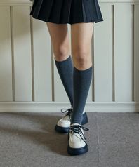 [2EA 1SET] BASIC KNEE HIGH SOCKS_CHARCOAL