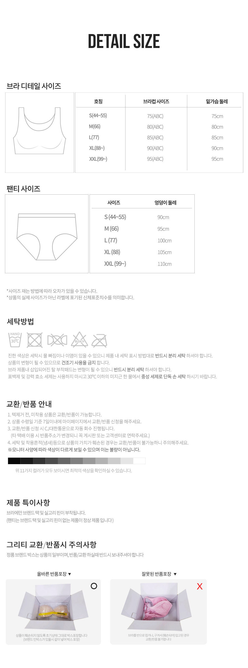[2PACK] 나일론골지 패드고정형 후크형 브라팬티 세트