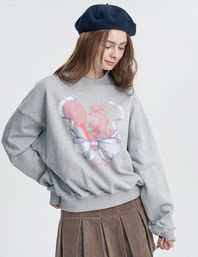 루즈핏 리본 플라워 스웻 셔츠_멜란지그레이