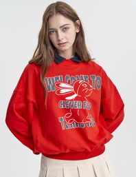 웰컴 레빗 루즈핏 스웻셔츠_레드