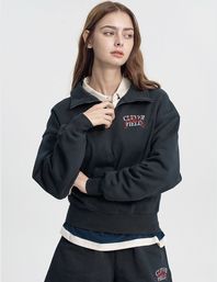 하이넥 집업 클레버 리본 스웻셔츠_블랙