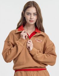 하이넥 집업 클레버 리본 스웻셔츠_브라운