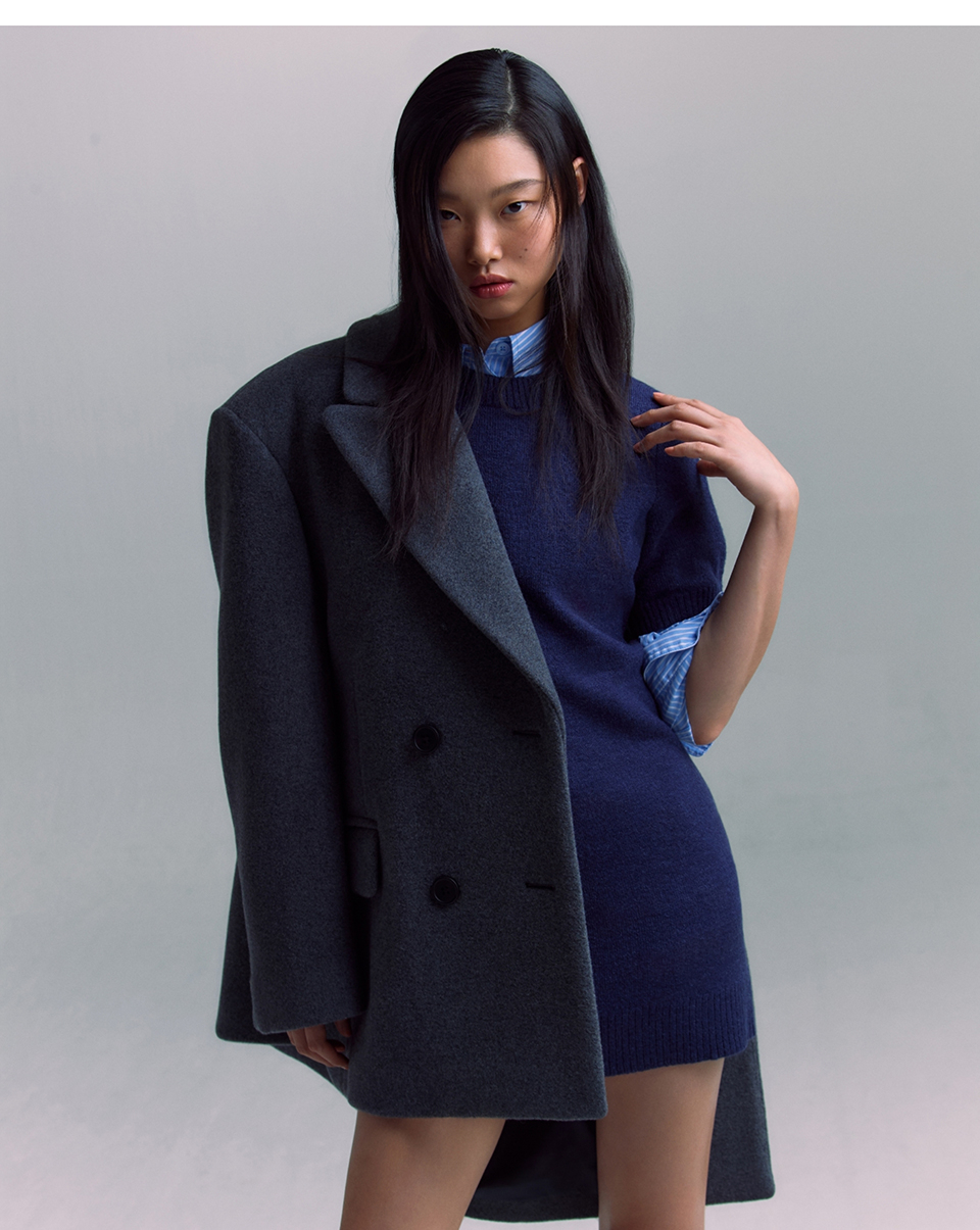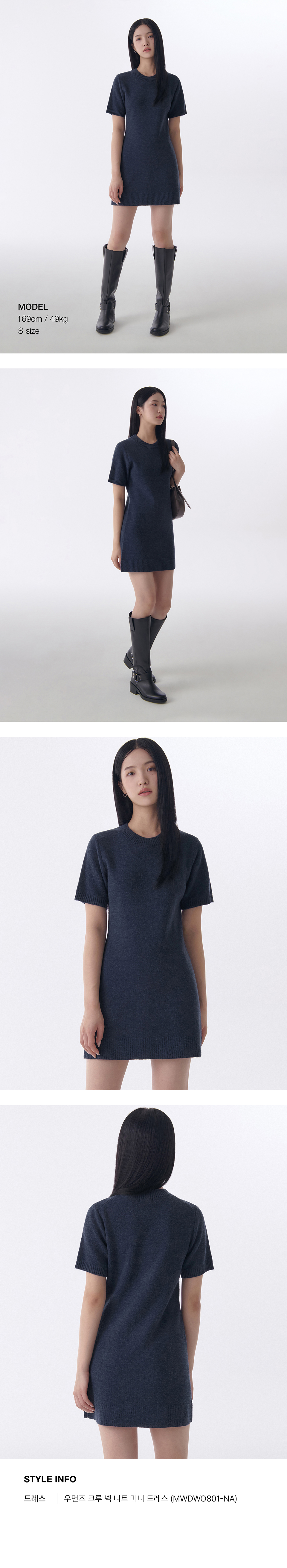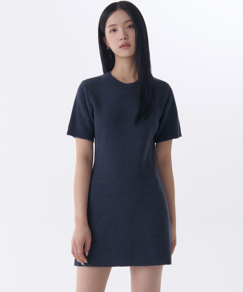 우먼즈 크루 넥 니트 미니 드레스 [네이비]