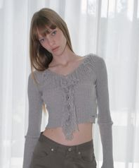 FRINGE RIBBED CARDIGAN [MELANGE]