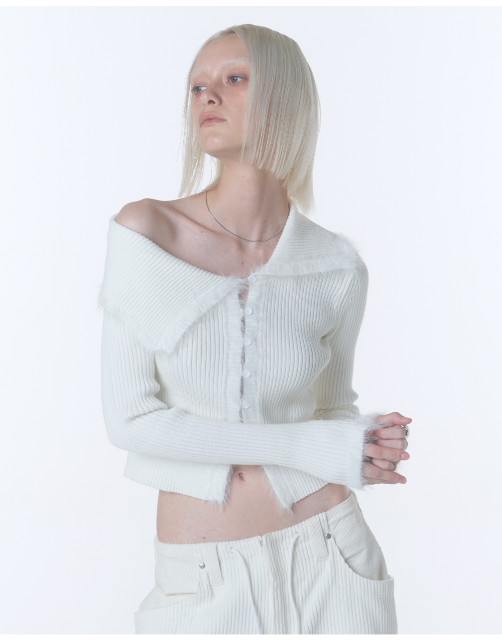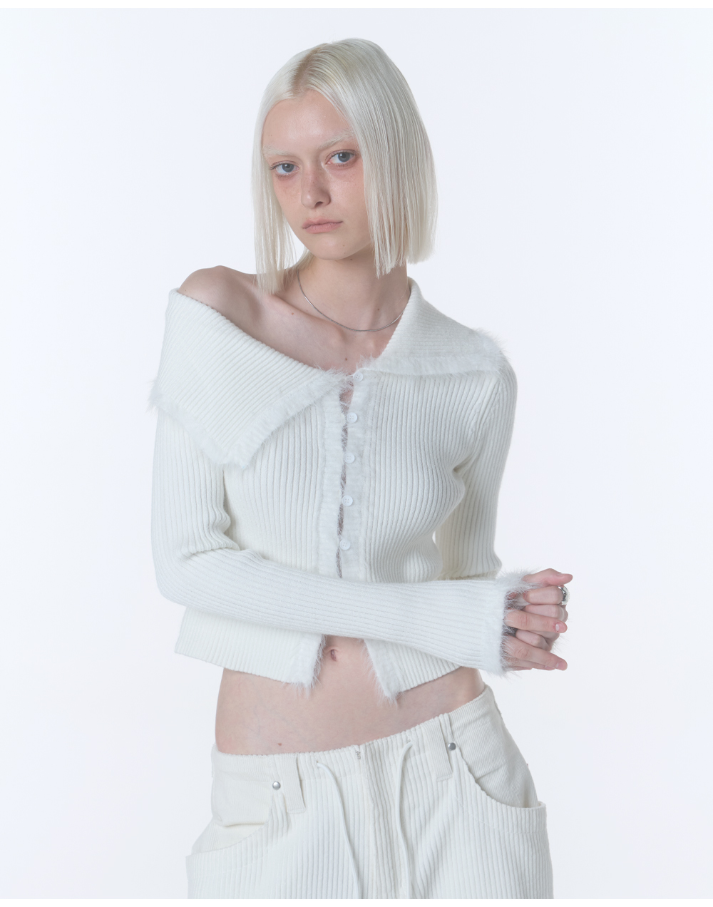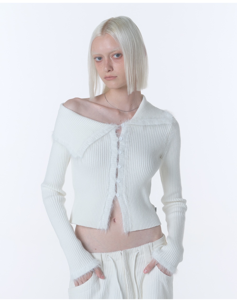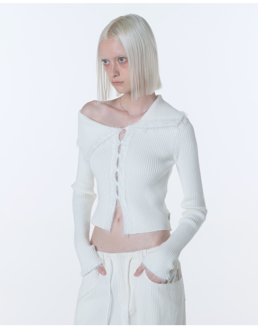 TRIMMING OFF-SHOULDER CARDIGAN [IVORY]
