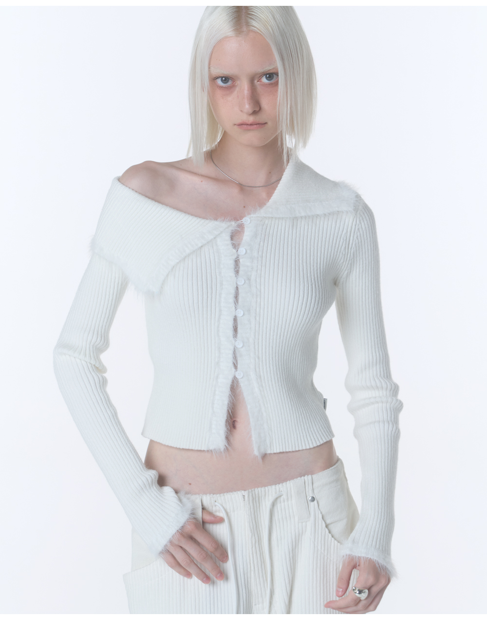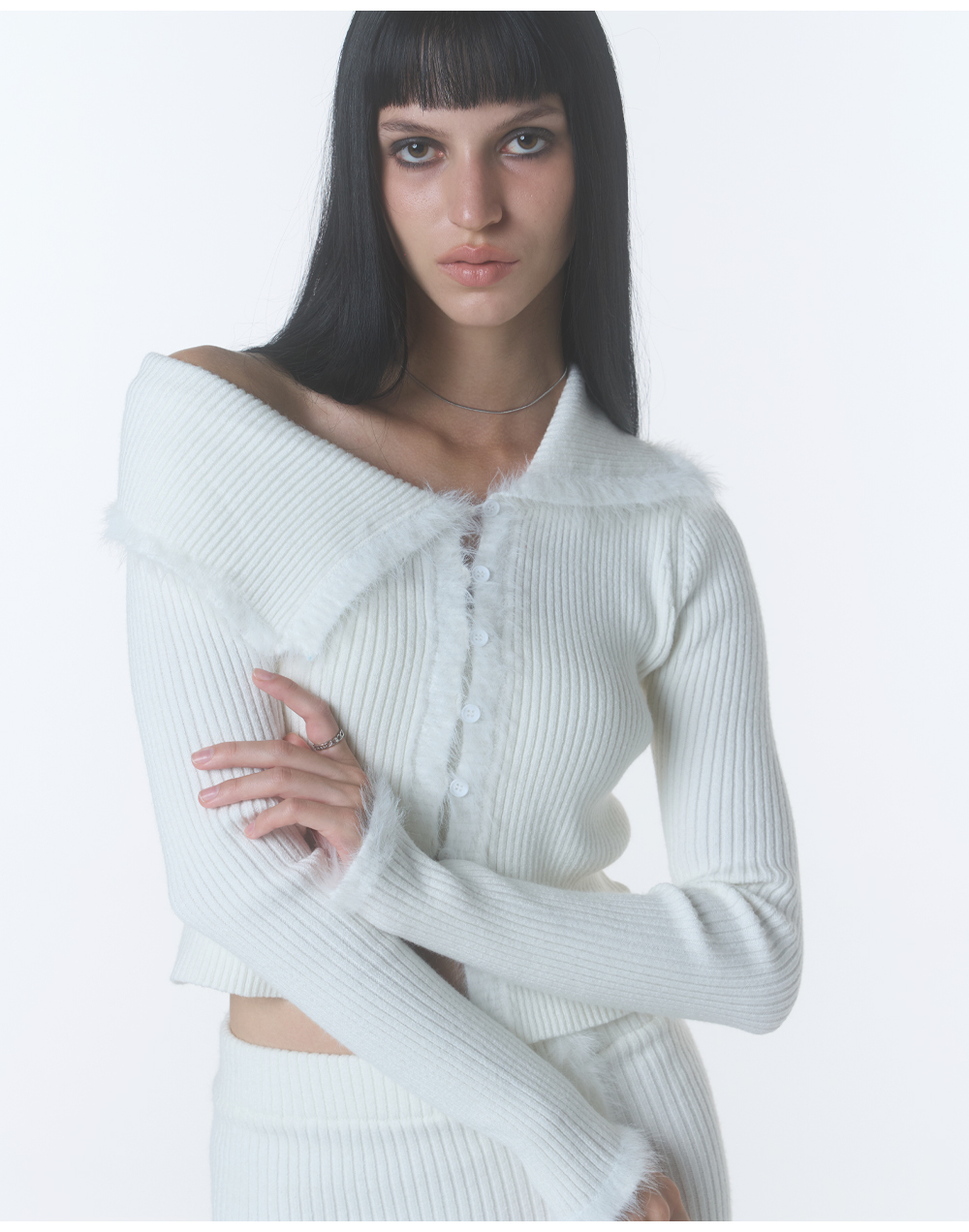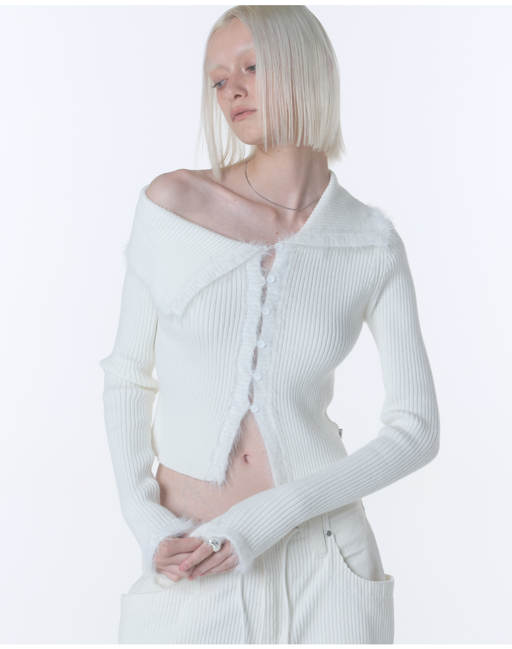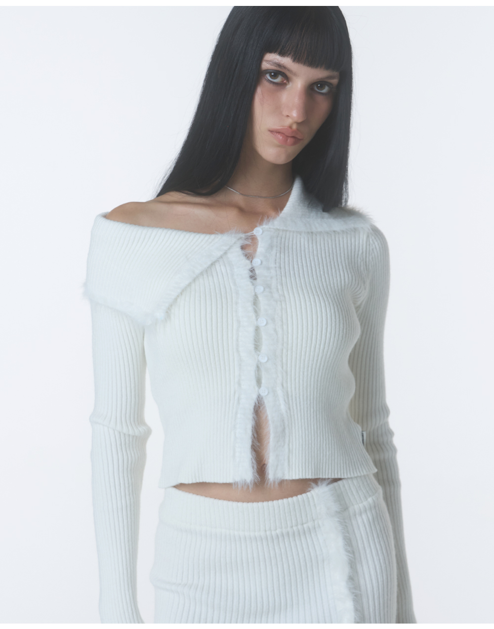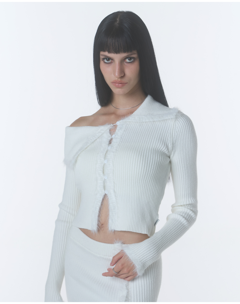 TRIMMING OFF-SHOULDER CARDIGAN [IVORY]