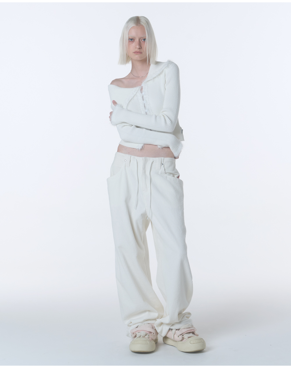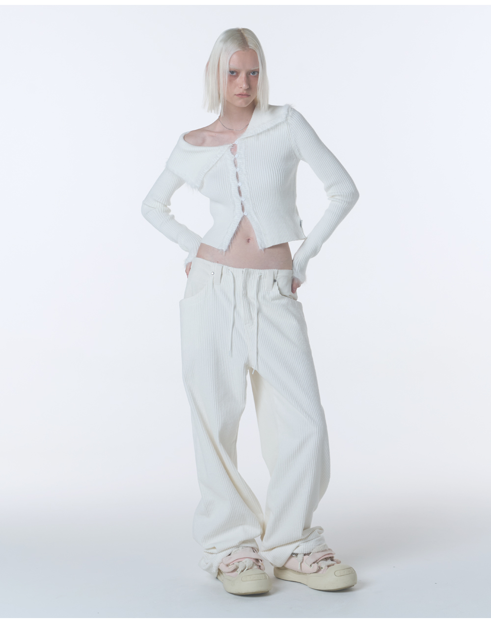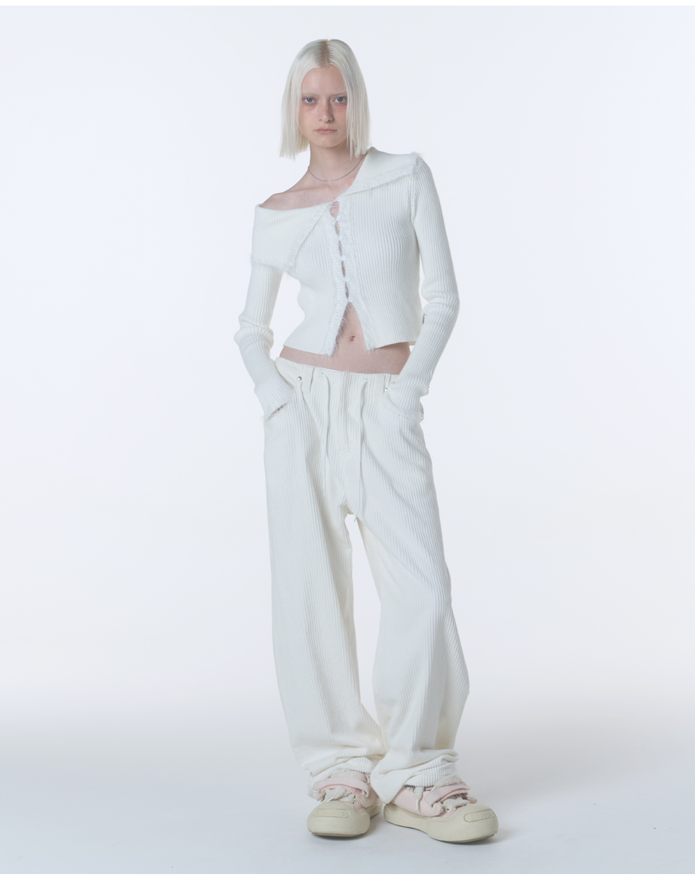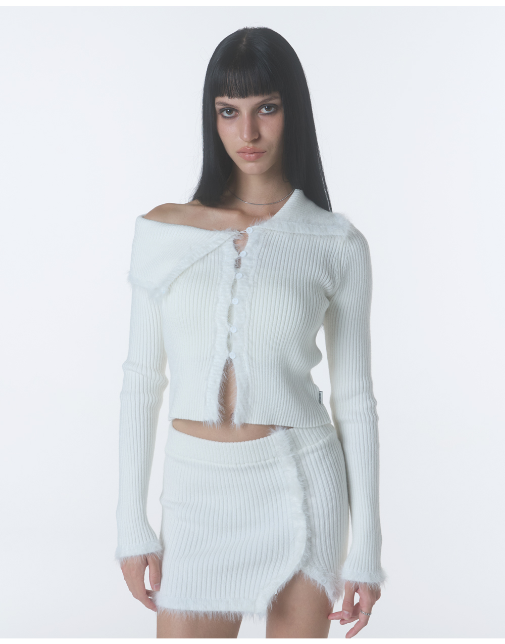 TRIMMING OFF-SHOULDER CARDIGAN [IVORY]