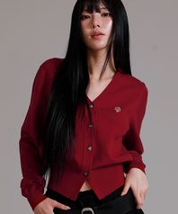 소프트 에센셜 브이넥 니트 가디건_와인