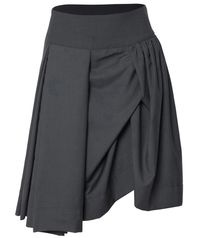 Asymmetrical Draped Midi Skirt (FL-248_Charcoal)