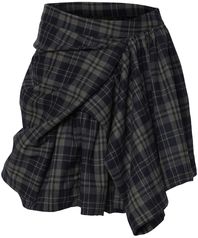Asymmetrical Draped Layered Skirt (FL-252_Checkered)