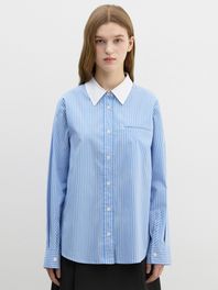 배색 칼라 스트라이프 셔츠_AWWSTP11080_BL