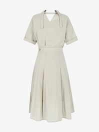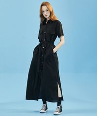 한 장의 천으로 몸을 감싸는 랩형 디자인이 특징인 원피스입니다. 베이직한 컬러와 기장감으로 편하게 착용할 수 있습니다. 단독 착용으로도 모던하고 세련된 룩을 완성할 수 있는 아이템입니다.