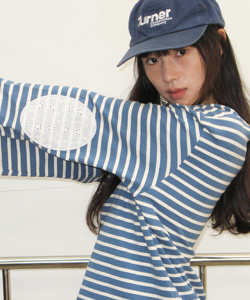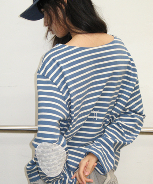 STRIPE LACE PATCH ELBOW PATCH LONG SLEEVE BLUE