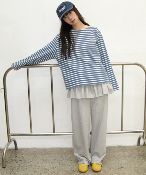 DOT R STRIPE BLOCKING SWEATSHIRT CREAM