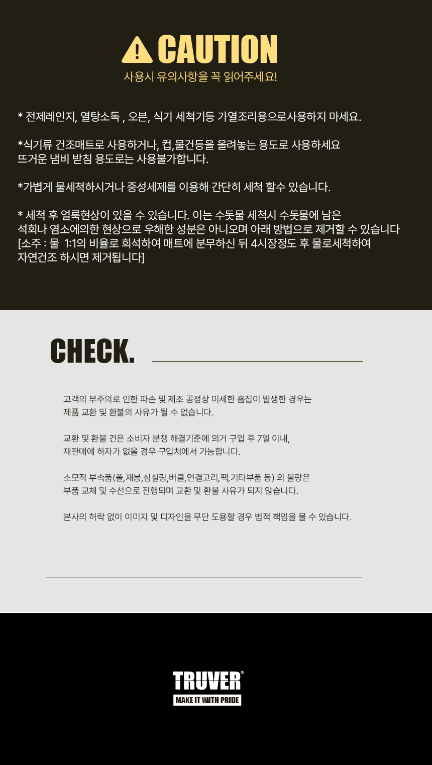 트루버(TRUVER)는 인도어와 아웃도어를 아우르는 높은 실용성의 라이프 스타일 캠핑을 추구하는 브랜드입니다.