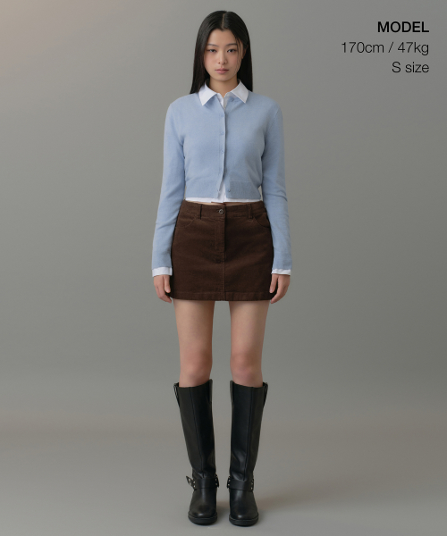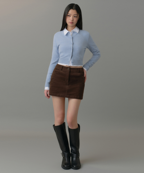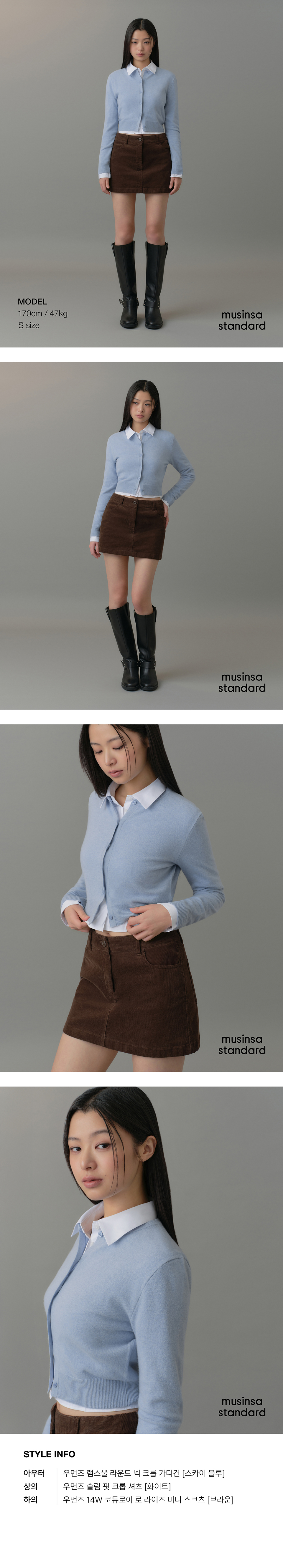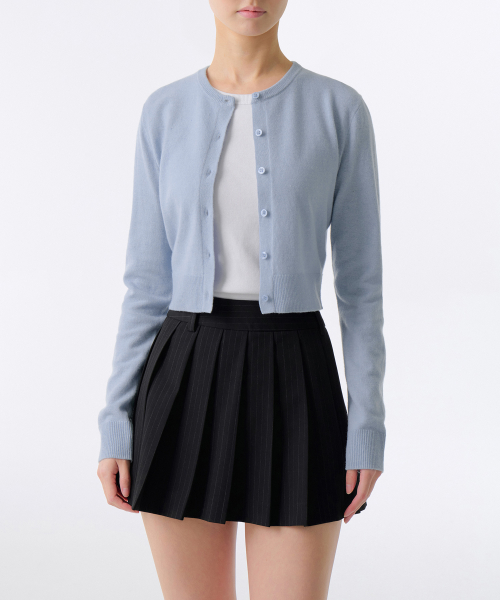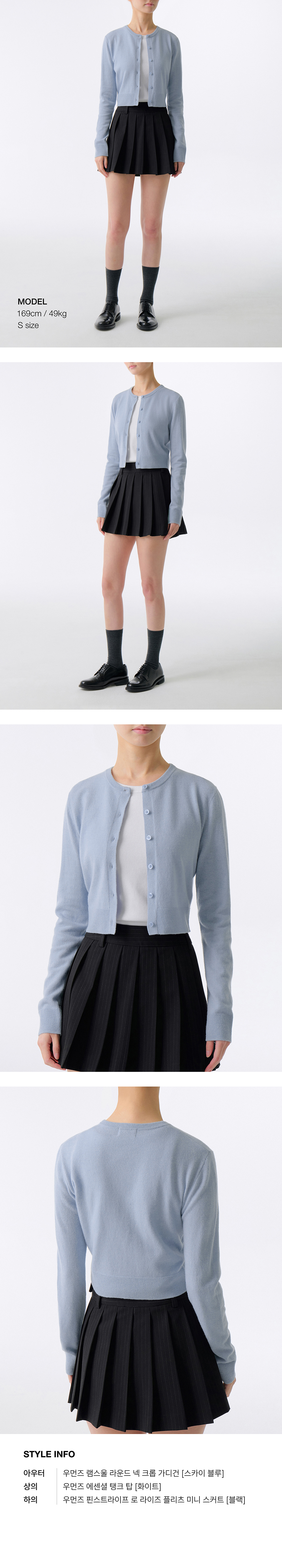 우먼즈 램스울 라운드 넥 크롭 가디건 [스카이 블루]