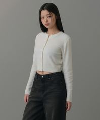 우먼즈 램스울 라운드 넥 크롭 가디건 [아이보리]