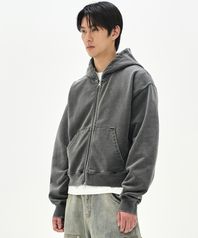 980G 크롭 피그먼트 후디 집업-차콜-