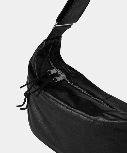 하프 문 레더 크로스백 (블랙)