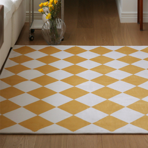 체크 무드 타일 디자인 인테리어 극세사 러그